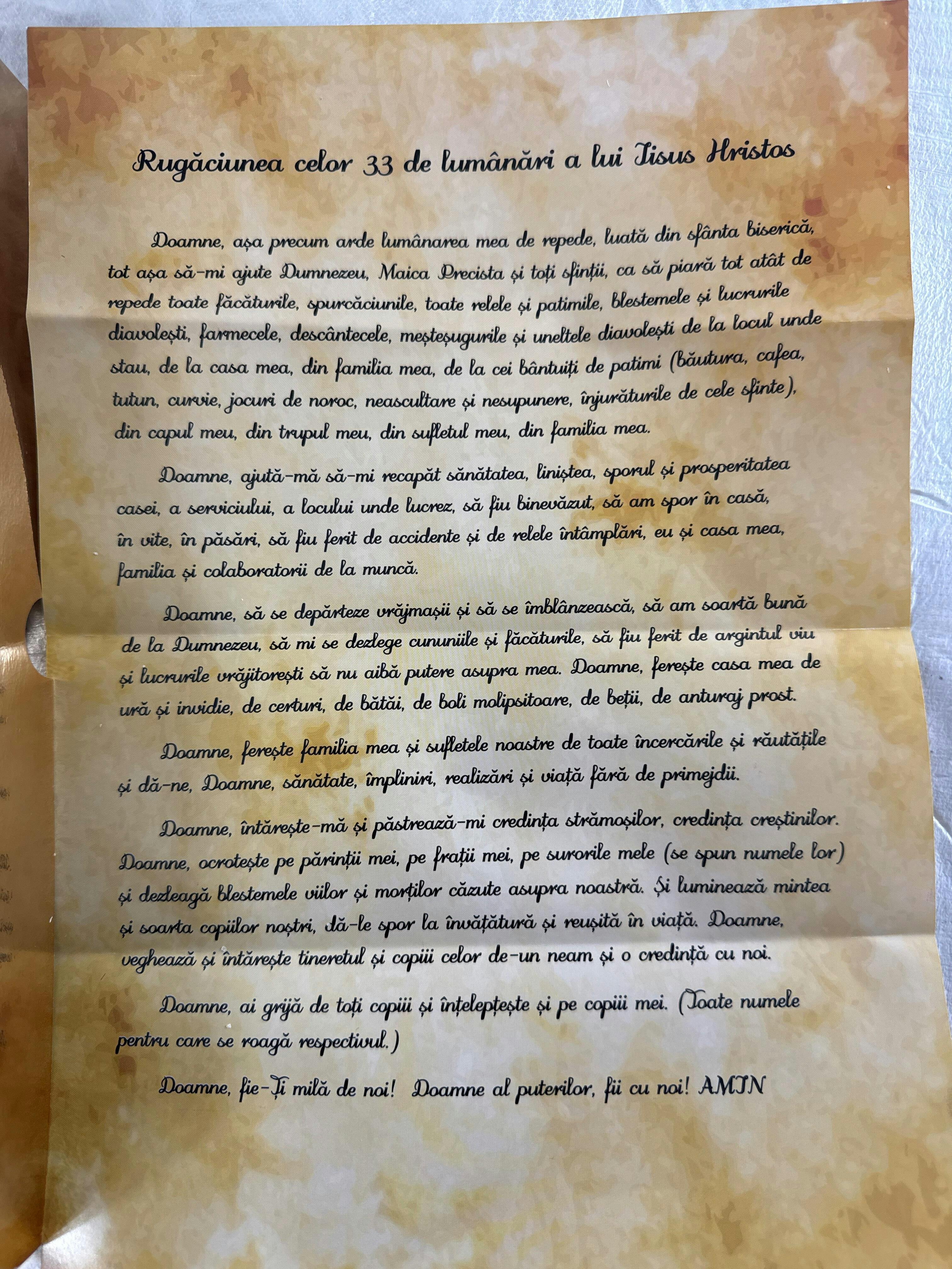 Am primit rapid coletul, lumânările sunt minunate si am primit si rugaciunea celor 33 de lumanari in pachet